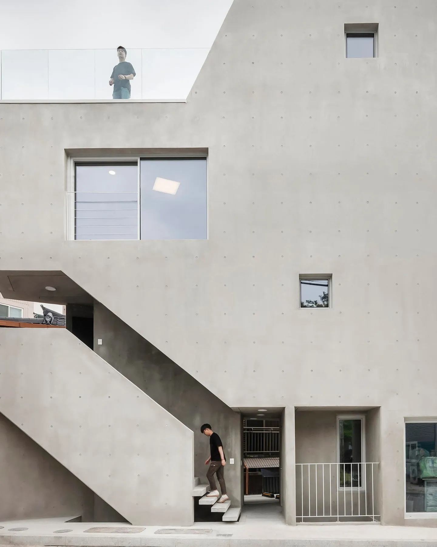 عصر ایران - این پروژه که برای یک زوج فعال در حوزه مد و فشن طراحی شده، فضاهای زندگی و کار را در یک سازه واحد با بتن اکسپوز (نمایان) ترکیب میکند. طبقات پایین ساختمان بهعنوان استودیو و فضای اداری طراحی شدهاند، در حالی که طبقات بالایی شامل اتاقهای خصوصی و یک تراس در بام هستند.