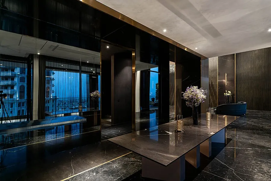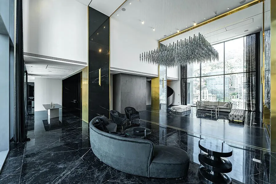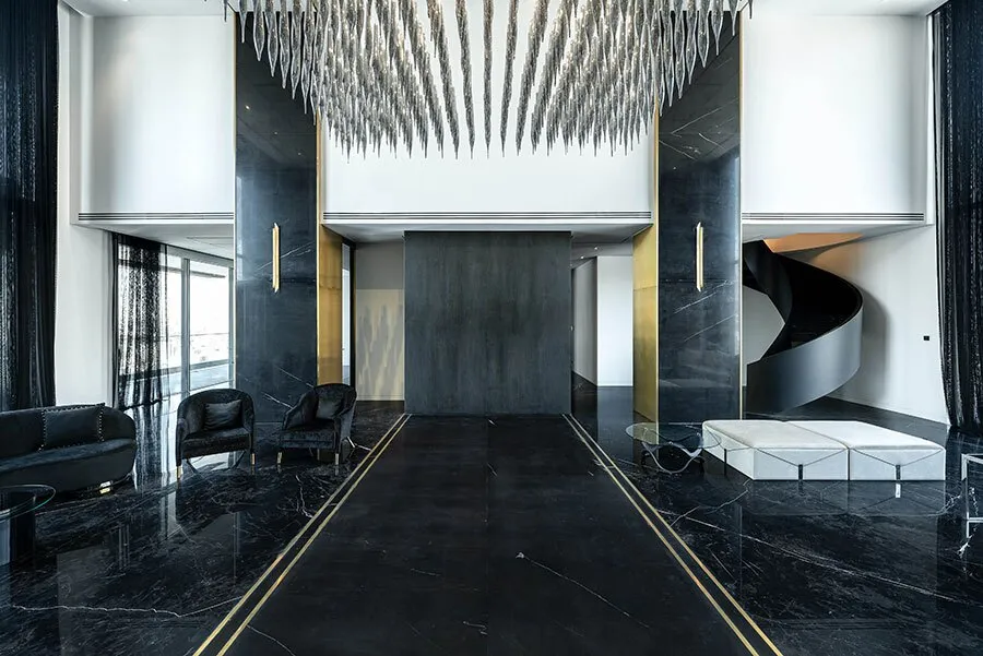 با توجه به گروه هدف مجتمع های مسکونی چنین، ایده مولد طراحی عناصر لوکس و رویکردهای معاصر و مینیمال را به نحوی با هم پیوند داد تا به ترکیبی یکپارچه و هماهنگ دست یابد. به عنوان مثال، کاربست سنگ مشکی، استیل برنزی، چوب، چرم و تاچهای ظریفی از تزیینات لوکس، فضاسازی را زیباتر جلوه داده است.