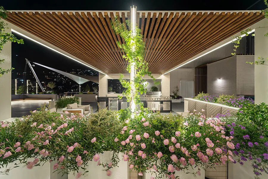 عصر ایران- شرح پروژه از زبان معمار: در طراحی پنت هاوس پارامیس گاردن طراح مسئولیت طراحی داخلی پنت هاوس غربی، باغ بام و طراحی منظر ساختمان را به عهده داشته است. پارامیس گاردن یک ساختمان مسکونی در دسته بندی برج باغ های لوکس محله نخجوان نیاوران است. در طراحی داخلی پنت هاوس غربی مجموعه و باغ بام اختصاصی آن، کارفرما تقاضای معماری مدرن و در عین حال لوکس را از طراح داشت.