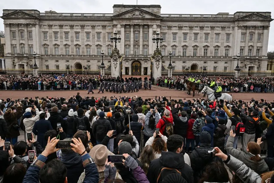 تجمع در مقابل کاخ باکینگهام در لندن برای تماشای مراسم تعویض گارد تشریفات/ رویترز