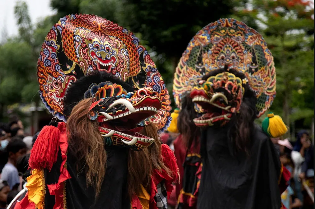 اجرای رقص سنتی در مراسم ضیافت افطار در پارکی در سورابایای اندونزی/ گتی ایمجز