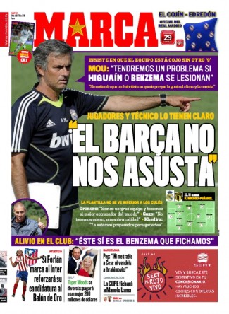 -- مورینیو : "اگر  اتفاقی برای هیگوئین یا بنزما بیفتد مثل اتفاقی  که برای مدافعان رخ داده ، ما مشکلاتی خواهیم داشت".