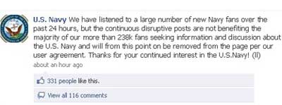 برخی پیام های اعتراضی ایرانیان به صفحه فیس بوک نیروی دریایی آمریکا به این شرح است :"