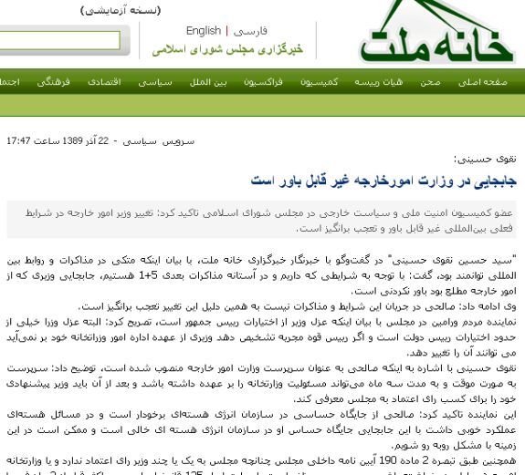 همچنین خبر دوم نام این نماینده به اشتباه ذکر شده در سایت شخصی سید حسین نقوی حسینی لینک شده است.