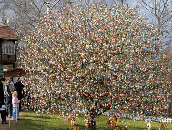 تزیین درختی با هزاران تخم مرغ رنگ شده به متاسبت عید پاک در آلمان