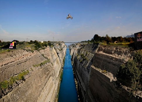 پرش " رابی مدیسون " موتور سوار 28 ساله استرالیایی از یک کانال آب به با عرض 85 متر و ارتفاع 100 متر در یونان