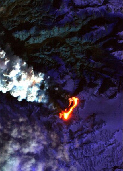 تصویر هوایی ناسا از فوران آتشفشان در ایسلند