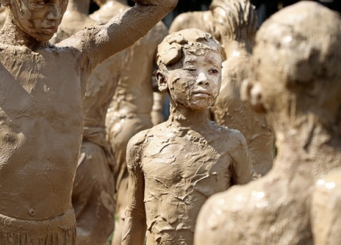حاشیه جشنواره فیلم کن. توریست ها با خون الود کردن صورت و لباس خود عکس می گیرند