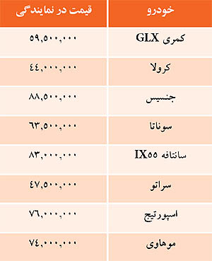 قيمت برخي خودروهاي وارداتي