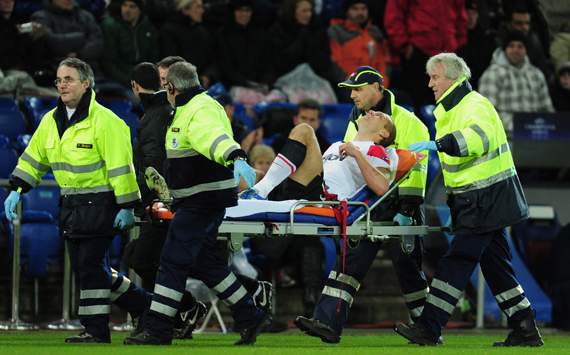 این بازیکن 30 ساله بلافاصله رو به نیمکت علامت تعویض را نشان داد و او را با برانکارد از زمین بیرون بردند و جایش را جانی ایونز گرفت.
