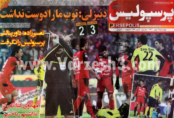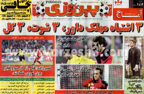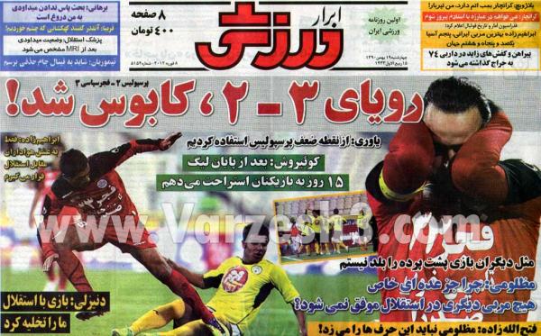 مهمترین عناوین روزنامه های ورزشی امروز را از صفحه نخست این روزنامه ها مشاهده نمایید. اغلب روزنامه ها تیتر اول خود را به شکست پرسپولیس مقابل فجر سپاسی اختصاص داده اند.