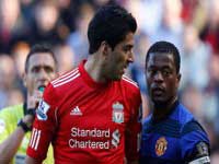 سوارس که بعد از دیدار رفت این فصل لیورپول- منچستریونایتد از سوی پاتریس اورا، مدافع یونایتدها، متهم به توهین نژادپرستانه شده و برای 8 جلسه از همراهی تیمش محروم شد، در مراسم ابتدایی دیدار امروز از دست دادن با مدافع فرانسوی حریف سرباز زد.