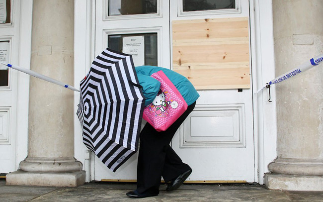 پنهان شدن یک زن انگلیسی از دوربین خبرنگاران به هنگام ورودش به دادگاه برای محاکمه به اتهام قتل دختر 3 ساله اش در 8 سال پیش