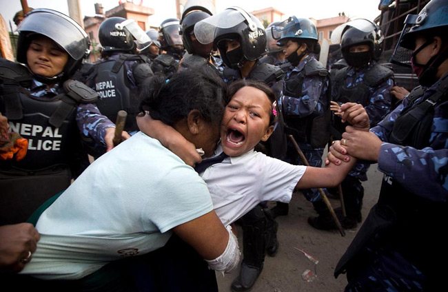 ممانعت یک مادر از دستگیری دخترش به دست پلیس نپال