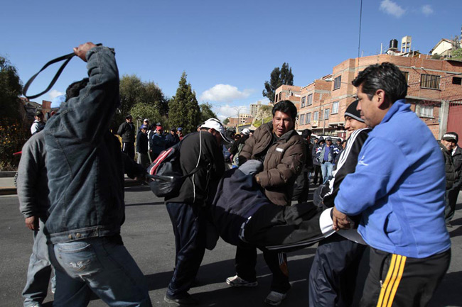 کتک زدن یک راننده از سوی هم صنفانش به دلیل عدم شرکت او در اعتصاب عمومی راننده ها در لاپاز ( بولیوی)
