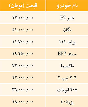قیمت برخی خودروهای داخلی