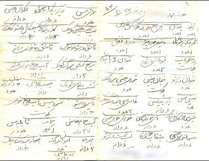 تصویر زیر صورت یک جهیزیه در سال 1354 است که خواندن اقلام ذکر شده در آن می تواند جالب باشد.