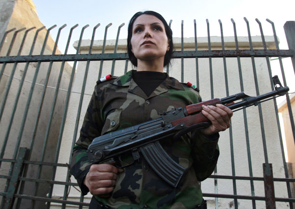 زنانی مسلح به کلاشینکف از ورودیهای این پادگان حفاظت میکنند و عدهای دیگر در ایستگاه بازرسی خودروها را مورد بازرسی قرار میدهند. آنها خود را "فدایی" میخوانند.