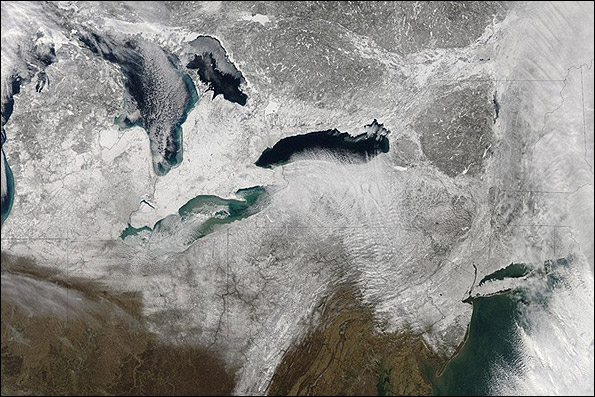 تصویر ناسا از طوفانی که طی روزهای 8 و 9 فوریه در شمال شرقی ایالات متحده ایجاد شد و موجب بارش برف در چندین ایالت شد