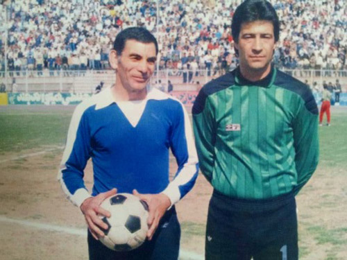 این عکس مربوط به بازی بزرگداشت فرهنگ بادکوبه دروازه بان اسبق تیم استقلال در دهه چهل است که در سال 1365 در امجدیه برگزار شد.