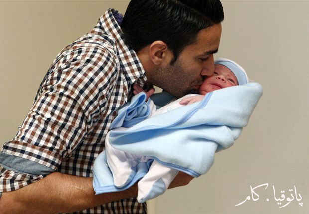 جواد نکونام و طفل نوزادش (عکس)