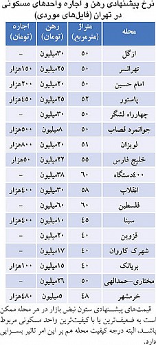نرخ جدید اجاره‌خانه‌های کوچک تهران (جدول)