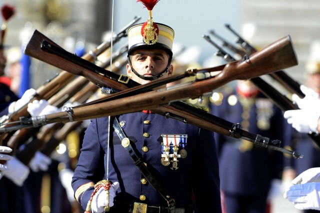 رژه ماهانه افسران گارد سلطنتی ارتش اسپانیا در کاخ پادشاهی در مادرید