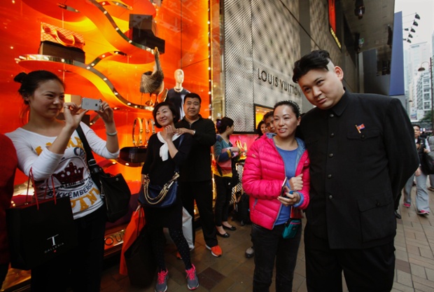 عصر ایران به نقل از گاردین ،این مرد که شباهت عجیبی به کیم جونگ اون رهبر جوان کره شمالی دارد با لباس مشابه رهبر کره و با نشان پرچم این کشور در سینه در خیابان های هنگ کنگ راه رفته و توجه مردم و توریست ها رابه خود جلب می کند.