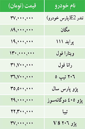قيمت برخی خودروهاي داخلي (جدول)