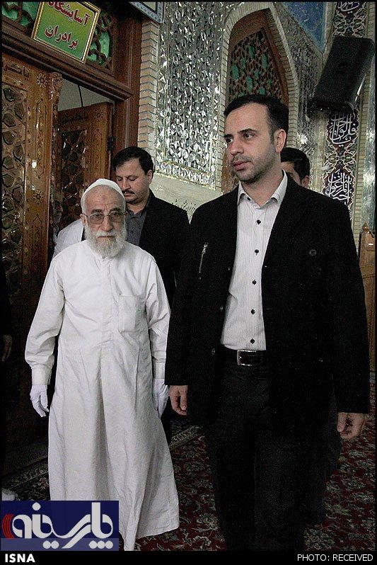 تصویر زیر، آیتالله جنتی را در یکی از اماکن متبرکه نشان میدهد.