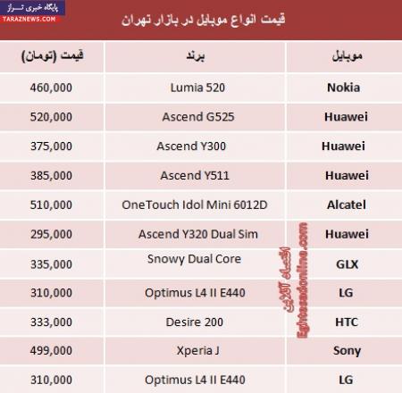 قیمت برندها و مدل های پرطرفدار انواع گوشی های تلفن همراه کمتر از ۵۰۰ هزار تومانی موجود در بازار به ترتیب میزان محبوبیت