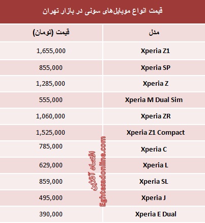 به گزارش بازار موبایل تهران، قیمت انواع محبوب ترین مدل های تلفن همراه برند سونی در بازار به شرح زیر است: