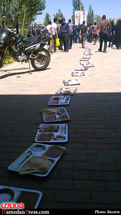 به گزارش همدان پرس؛ دانشجویان دانشگاه بوعلی سینا از خوردن غذای سلف دانشگاه خودداری کردند و سینی های غذای خود را از محل سلف مرکزی دانشگاه تا ساختمان مرکزی دانشگاه بوعلی سینا بر روی زمین قرار دادند.