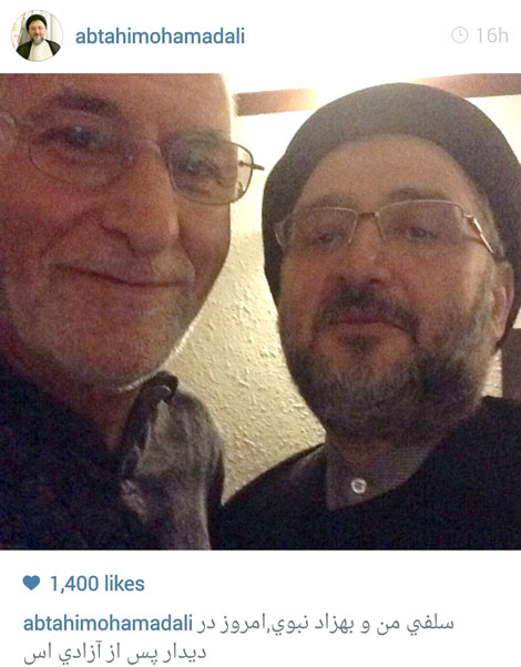 محمدعلی ابطحی در صفحه‌ اینستاگرام خود، سلفي (از خود عكس گرفتن) از خودش به همراه بهزاد نبوي را منتشر کرده است.