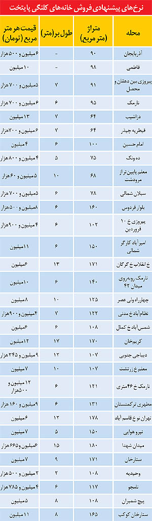 شاید کسانی که 8 تا 9 ماه است كه ملکشان را برای فروش گذاشتهاند و بیمشتری بوده بهدلیل نیاز فوری به پول کمتر از نرخ بازار خانه کلنگیشان را بفروشند اما قیمتها در این مدت هیچ تغییری نداشته است.