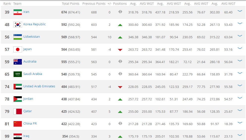 براساس رنکینگ اعلام شده ازبکستان موفق شده ژاپن و استرالیا را رد کند و به عنوان سومین تیم آسیا مطرح شد.