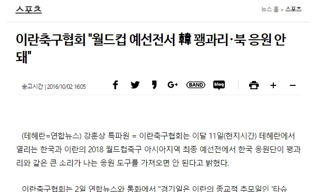 به گزارش عصرایران ، سایت کره ای یوهاب نیوز در گزارشی مدعی شده است که فدراسیون فوتبال در نامه ای به سفارت ایران در کره جنوبی درخواست کرده که تماشاگران کره با رعایت برخی موازین در بازی روز بیستم مهر در استادیوم آزادی حاضر شوند.