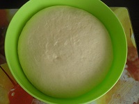 ۴- داخل کاسه ای را چرب کنید و خمیر را داخل کاسه قرار دهید، روی خمیر را بپوشانید و در جای گرمی 1 ساعت استراحت دهید تا حجم خمیر 2 برابر شود، پس از آماده شدن پف خمیر را با فشار دست بگیرید.