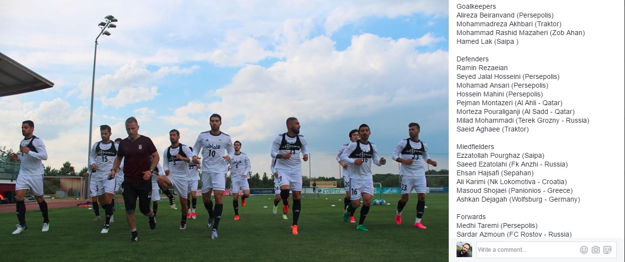 تحلیل شرایط تیم ملی بسیار مشکل شده است. اینقدر مشکل که نمی شود متوجه شد چرا سرمربی تیم ملی فهرست تیم ملی را به جای معرفی به فدراسیون فوتبال و اعلام توسط سایت رسمی در صفحه فیس بوکش این کار را کرده اما به هرحال کی روش در میان شایعاتی از درگیری ادامه دار با پرسپولیس فهرستی از بازیکنان تیم ملی معرفی کرد که 6 پرسپولیسی درآن دارد.