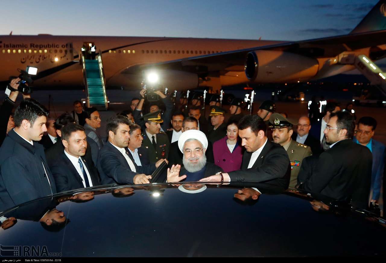 حسن روحانی رئیس جمهوری اسلامی ایران سه‌شنبه شب در راس هیأتی برای شرکت در نشست سه جانبه درباره سوریه در ترکیه، با استقبال «نورالدین جانیکلی» وزیر دفاع ترکیه و سفیران دو کشور وارد آنکارا شد