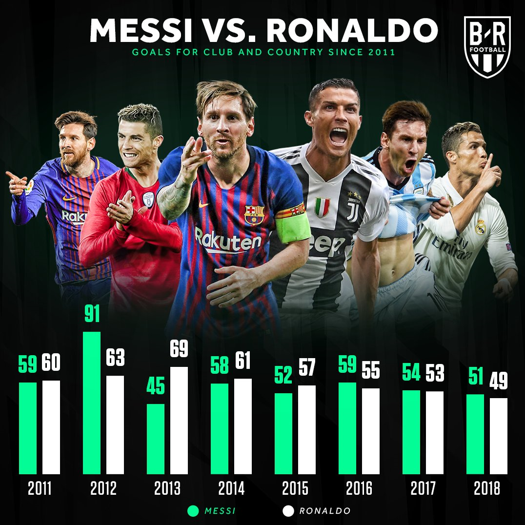 به بهانه نرسیدن کریس رونالدو به 50 گل زده در یک سال، مقایسهای میان این فوق ستاره پرتغالی و لیونل مسی انجام شده است.