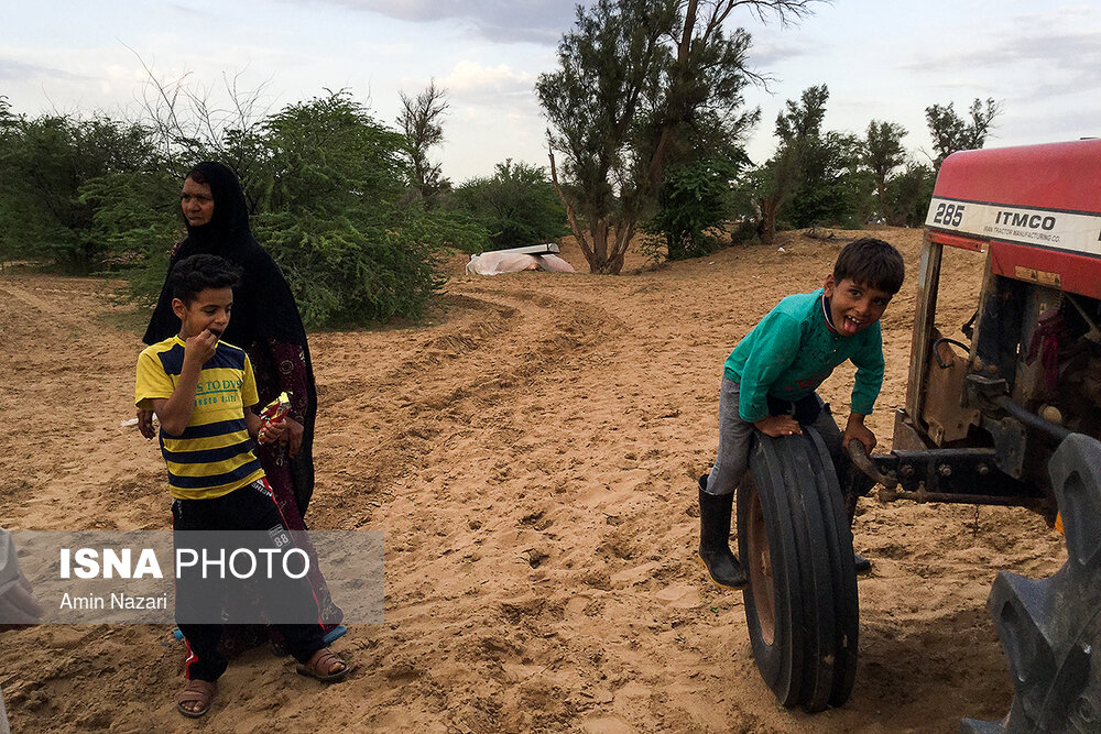 اهالی روستای «خسرج» از توابع شهرستان حمیدیه پس از گذشت سه هفته از سیل همچنان در تپههای شنی اطراف این روستا زندگی میکنند.