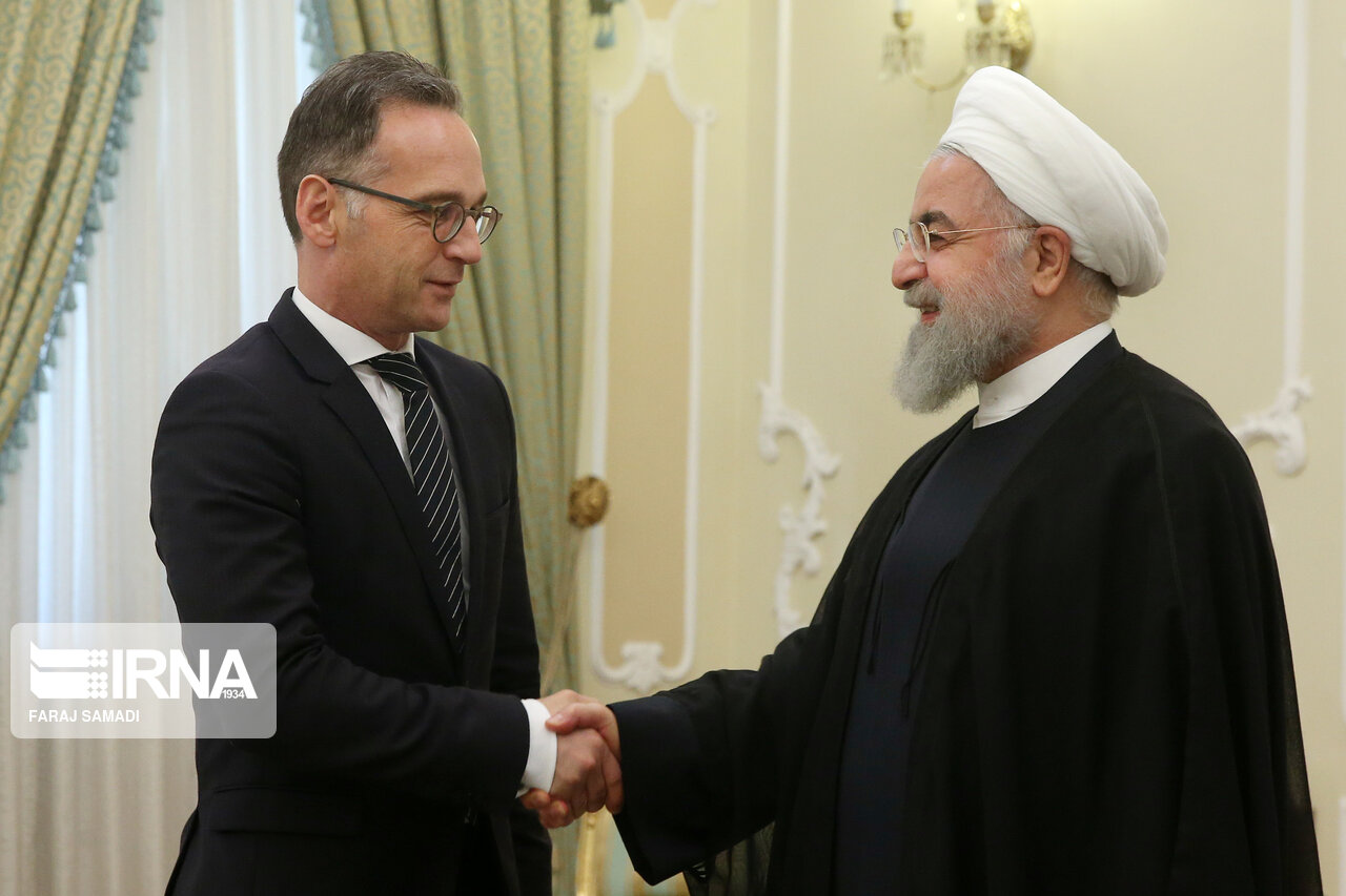 تصویر نمایی از دیدار امروز هایکو ماس، وزیر خارجه آلمان را با حجت الاسلام روحانی رئیس جمهوری نشان می دهد