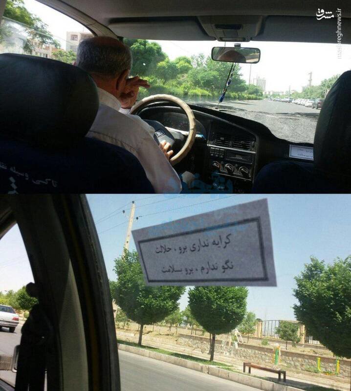 در تصویر زیر راننده تاکسی با معرفت قزوینی را می‌بینید که روی خودرویش نوشته: کرایه نداری برو، حلالت نگو ندارم، برو بسلامت. مرد اونه که موقع بخشش هم نخواد شرمندگی فقیر رو ببینه.