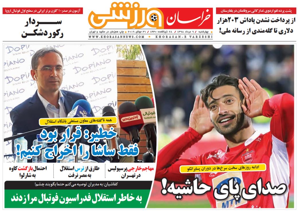 نشست خبری علی خطیر، مودیبو مایگا، خرید احتمالی پرسپولیس و سایر اخبار ورزشی و نقل و انتقالی، سوژه مهم روزنامه های ورزشی بوده است.