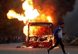 ویدئویی که از بالکن یک ساختمان گرفته شده و توسط شبکه (اندیتیوی) هند عصر امروز (یکشنبه) منتشر شد، اتوبوسی را در حال سوختن در وسط جاده نشان می دهد. علاوه بر این رسانه های محلی گزارش دادند که چند اتوبوس دیگر در جنوب دهلی توسط تظاهرکنندگان به آتش کشیده شد.