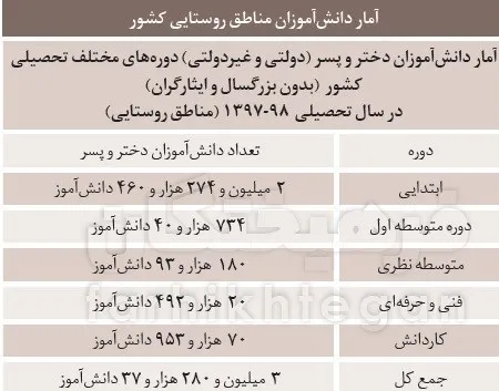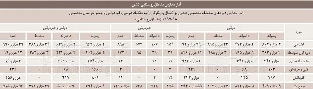 در ادامه و در جداول مختلف ابتدا به تعداد کل روستاهای کشور، بعد به مدارس روستایی و مناطقی که امکان دسترسی به اینترنت در آنها پایین‌تر است اشاره می‌کنم، بعد تعداد دانش‌آموزان این مناطق، سپس تعداد روستاهایی را که تحت پوشش شبکه اینترنت همراه قرار دارند بررسی می‌کنیم. بعد از آن احتمالا مشخص می‌شود مساله توسعه عدالت آموزشی در ایام بعد از کرونا صرفا محدود به ارائه آموزش از راه دور، بسته‌های آموزشی و حتی تهیه ابزار اتصال به شبکه آموزش دانش‌آموزی شاد نیست و زیرساخت‌ها بالاتر از باقی متغیرها نقش تعیین‌کننده‌ای در پروسه آموزش دارند.