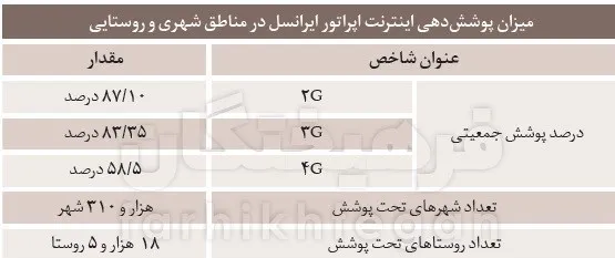 حدود یک‌سوم روستاهای کشور (تعداد کل روستاها ۹۸ هزار و ۱۰۰ روستا) تحت پوشش اینترنت همراه نیست و مردم و دانش‌آموزان و این روستاها به اینترنت دسترسی ندارند.
