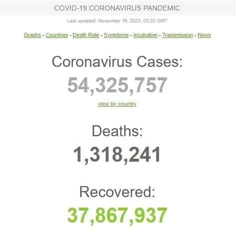 تعداد مبتلایان به ویروس کرونا در جهان به 54 میلیون و 325 هزار و 757 نفر رسید.