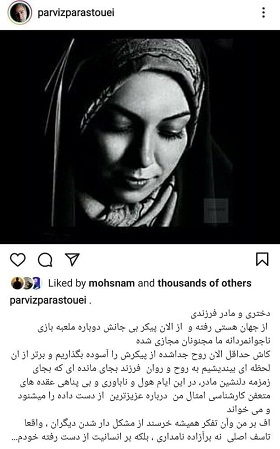 پرستویی در متن اینستاگرامیاش نوشته است: